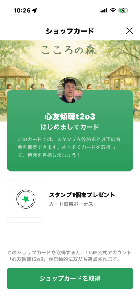 私のショップカードを取得していない人は、こちらから取得しておいてください。